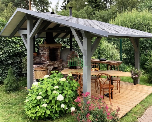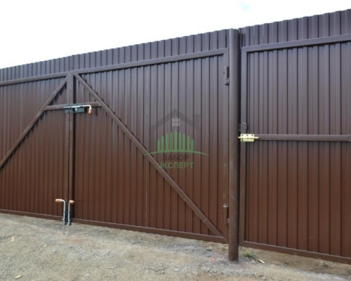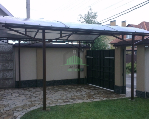 Откатные ворота, кирпич для столбов и все сопутствующие материалы для ленточного фундамента доставляются отдельно.